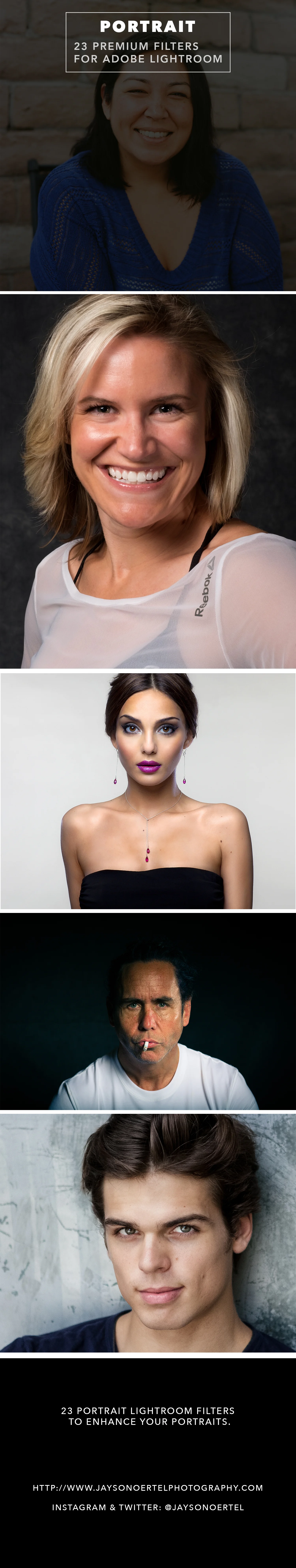23 Premium Portrait Presets Collection by Jayson Oertel, which I personally created and use for my professional work.